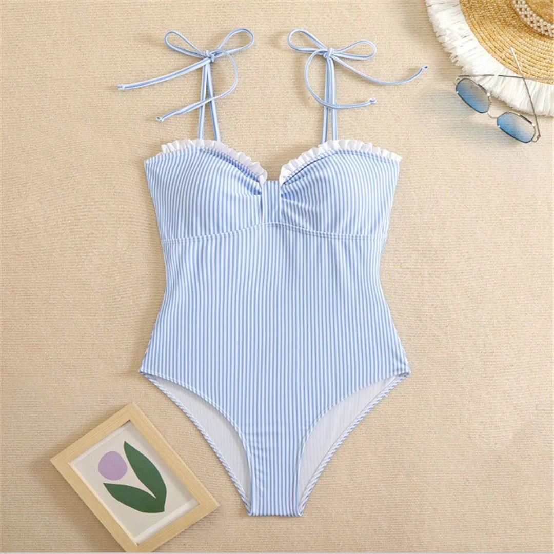 Ruffled bust trim and gathered front for a flirty, feminine touch